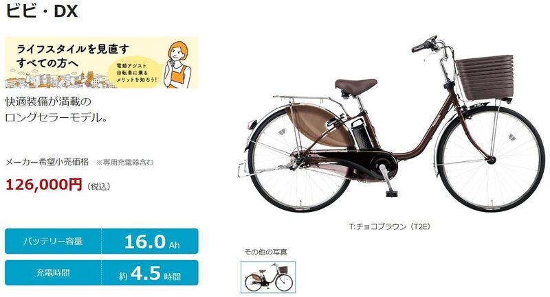 ビビ・DXはpanasonicが販売する電動アシスト自転車の中でもかなり人気の高いモデルとのことで、長距離走行に対応できるバッテリー容量だけではなく安定した走行性があることも魅力です。